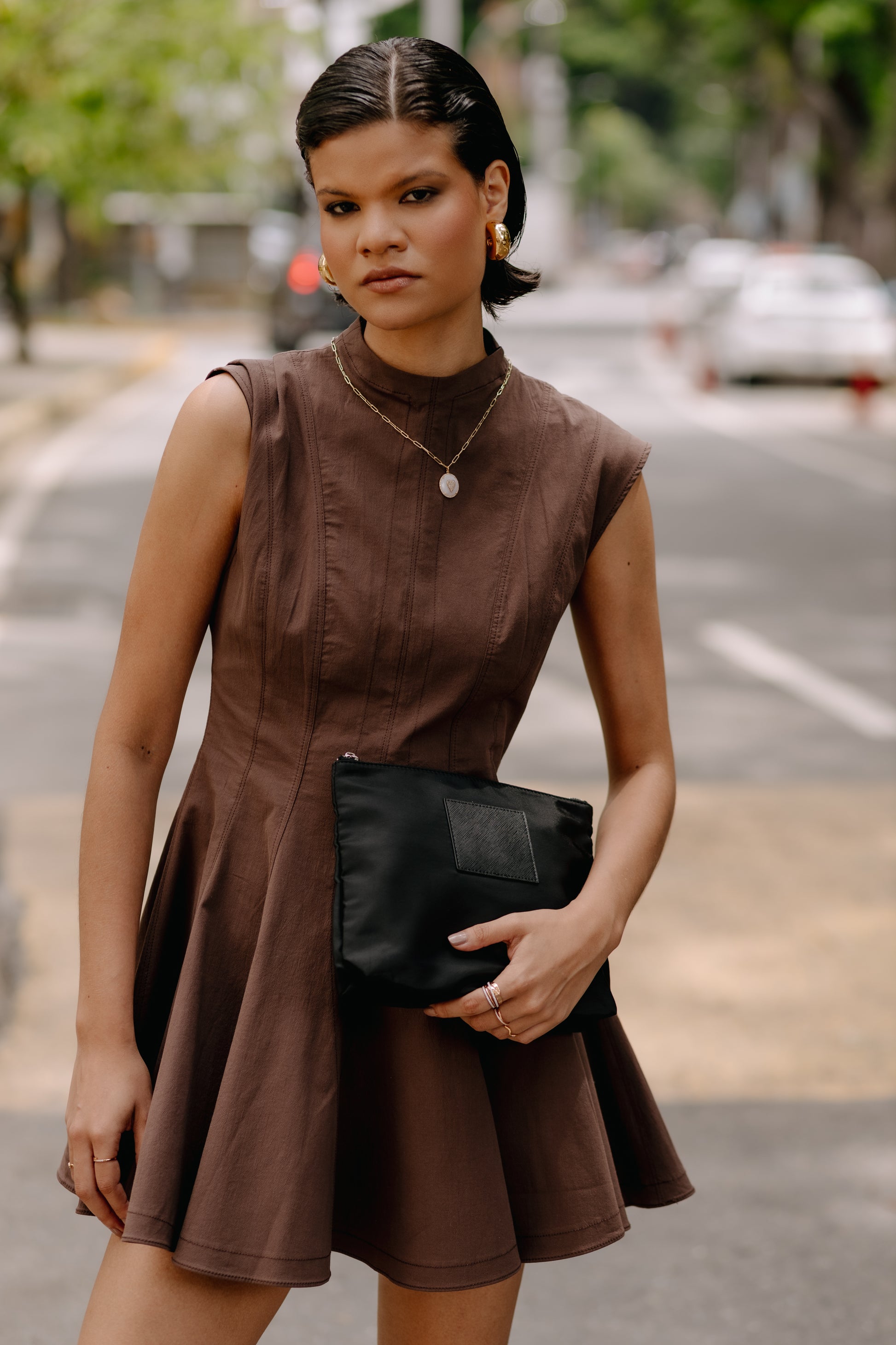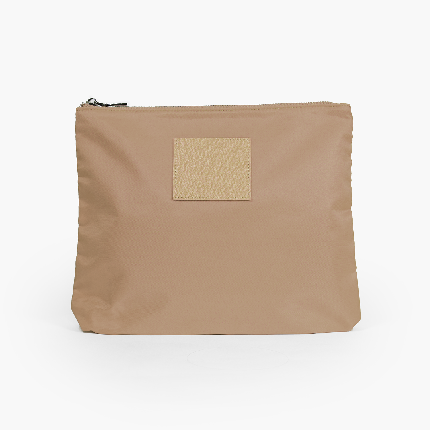 • Silver zipper closure